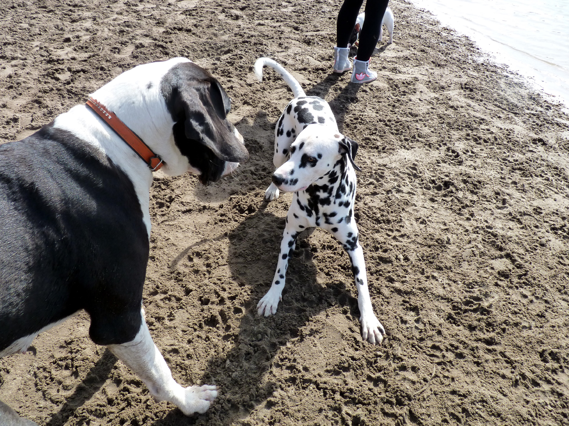 Auflösung der Spannung: Nachwuchsdogge Jana wird zum Spiel eingeladen. Beim nachfolgenden Spiel handelt es sich in der Regel um Hindernisläufe bei denen Hunde ihre Schnelligkeit, Geschicklichkeit u. Fitness gegenüber einem "Konkurrenten" zur Schau zu stellen. | |
